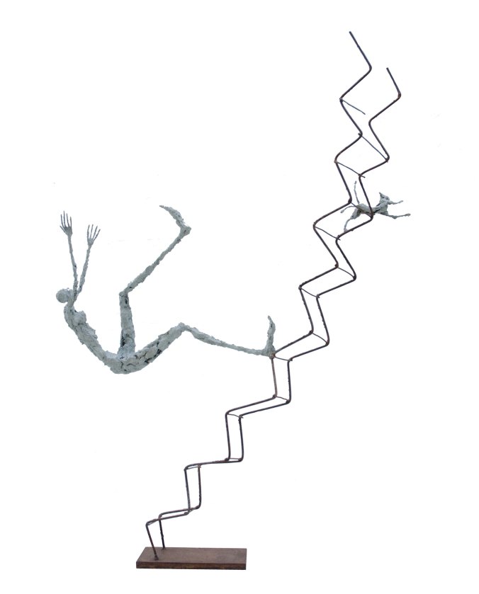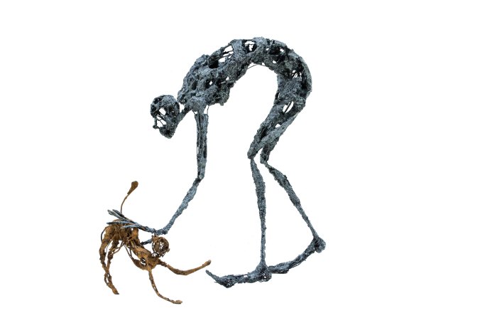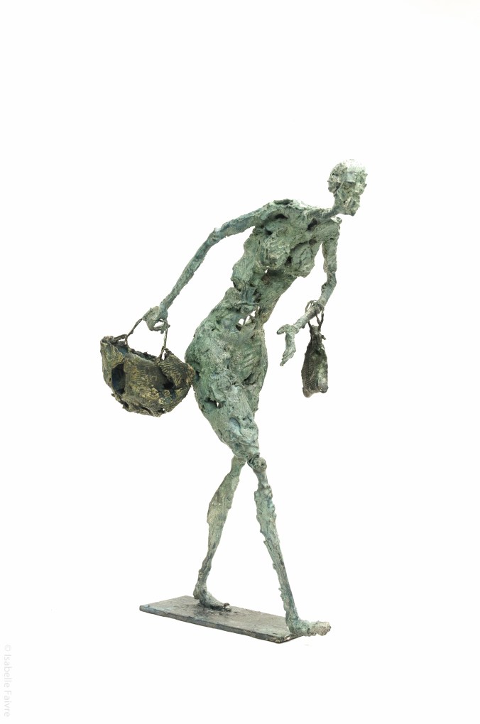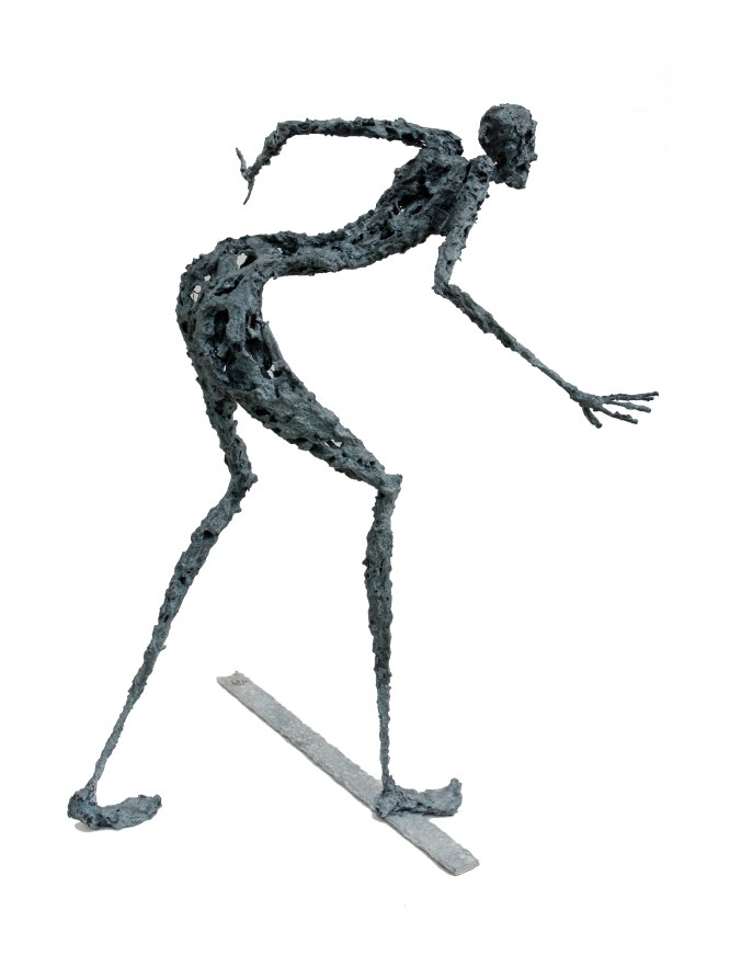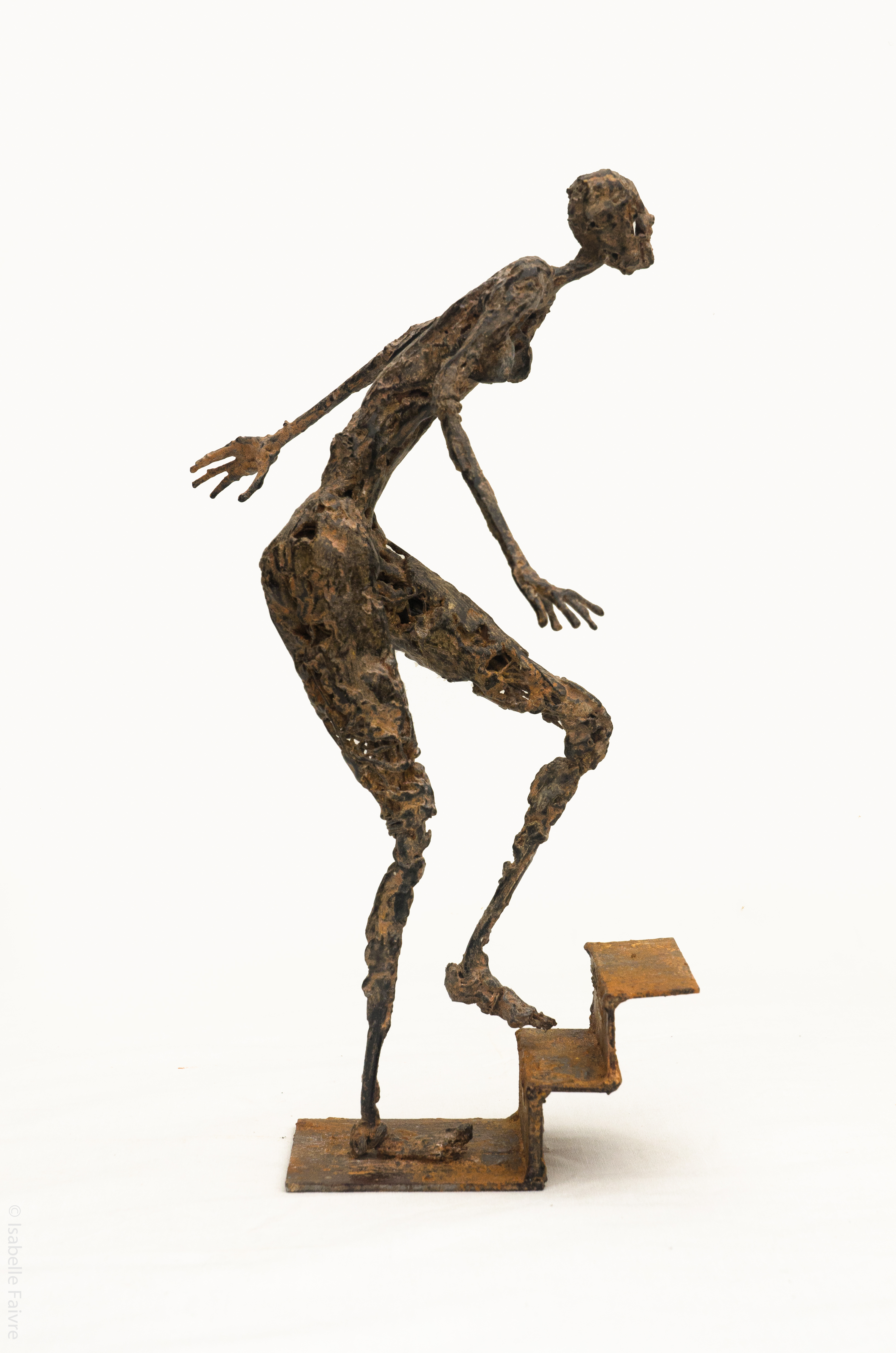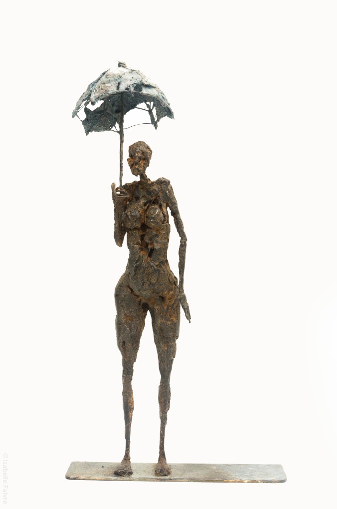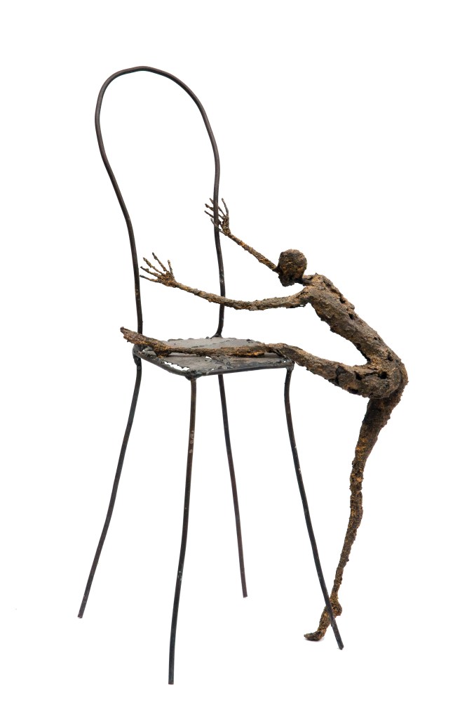 [Acier soudé, pâte à papier, patine – 25 x 22 x 46 cm]