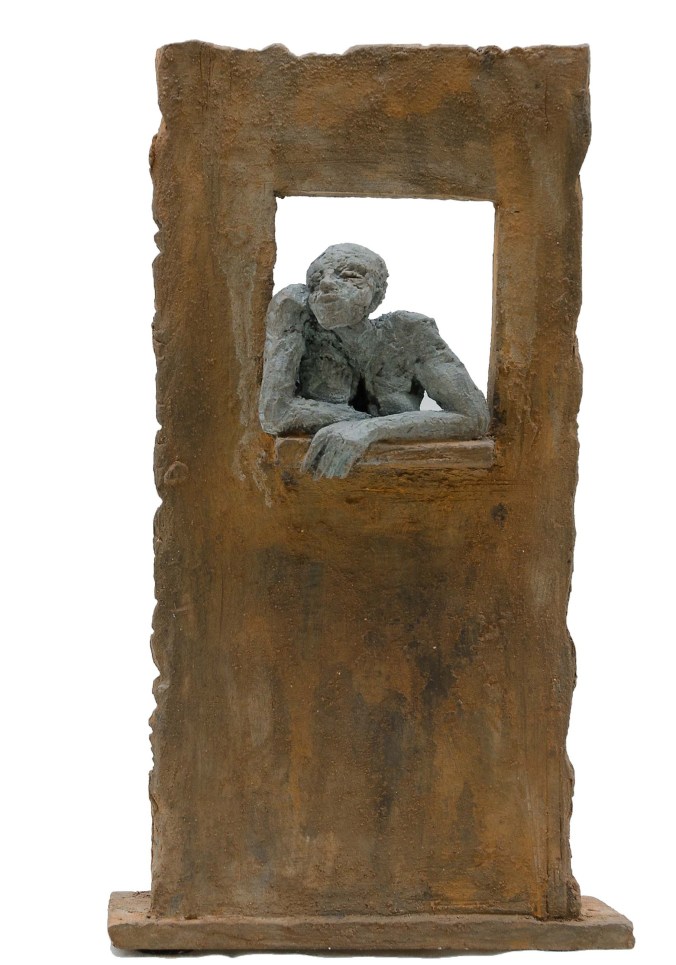 [Terre, pâte à papier, patine – 96 x 68 x 27 cm]