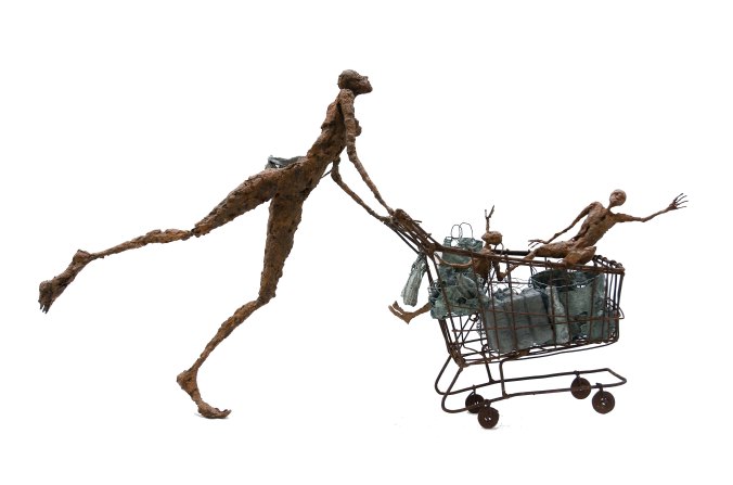 [Acier soudé, pâte à papier, patine – 102 x 30 x 58 cm]